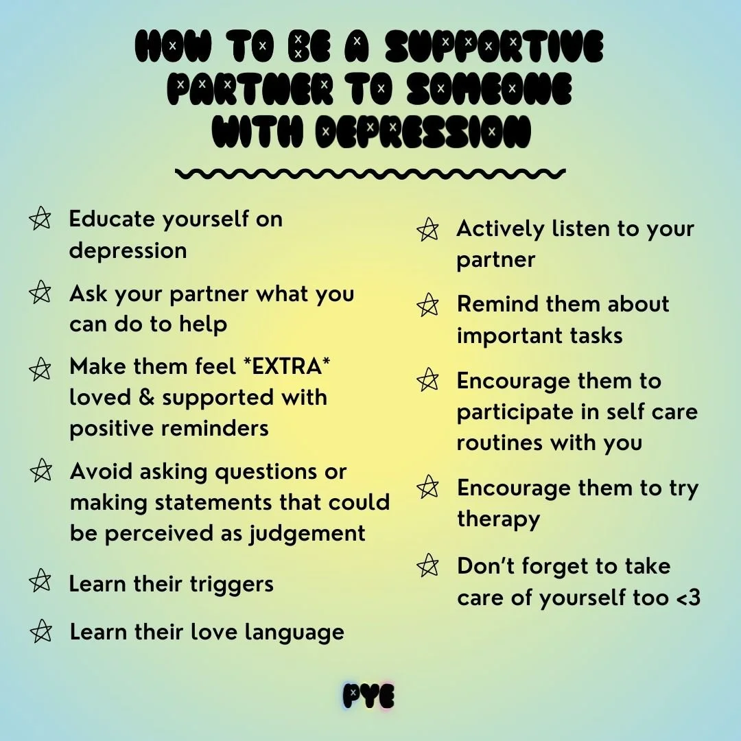 If you’re concerned about the safety of your partner or have questions, you can call mental health hotlines for more specific advice and questions! 988 is the national suicide & crisis hotline. You can call or text them with 24/7 access!